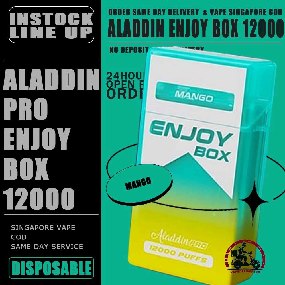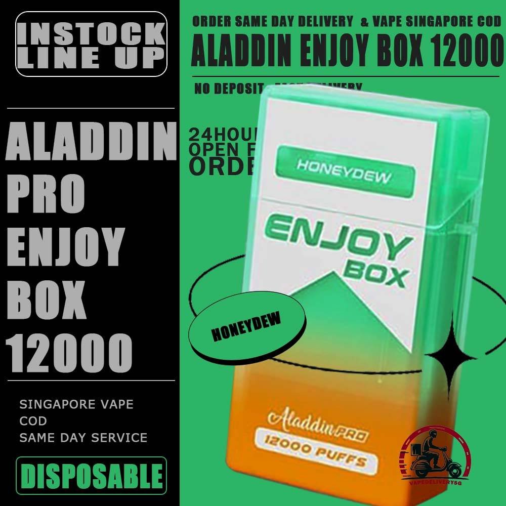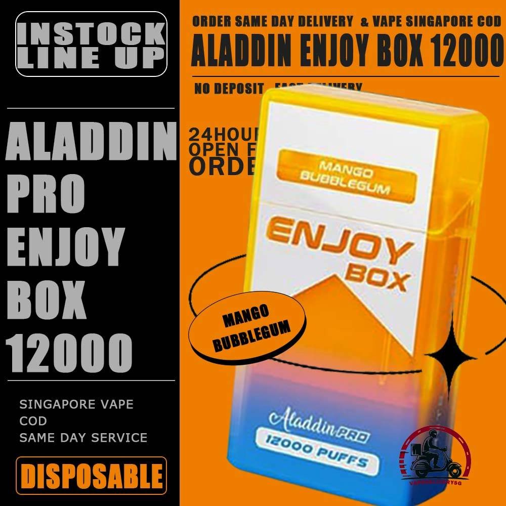 Sale of bundle package ALADDIN PRO ENJOY BOX 12000 Puffs Disposable , choose 10 x Pcs flavour get lowest price at VAPE DELIVERY SG SINGAPORE SHOP!